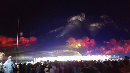 文藝演出是文化旅游中的主要表現(xiàn)手段,是靜態(tài)景觀與動態(tài)文化活動的有機結合,大型室外文化演出可以巧妙利用景區(qū)的自然景觀,達到虛實結合的美好境界。