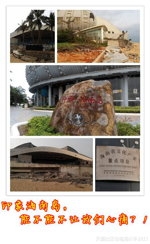 從2014年7月20日威馬遜臺風洗劫后,《印象海南島》便停止演出了,場地損壞,演員解散,昔日的繁華輝煌不再,只留下了幾個工作人員看守破敗的場館。
