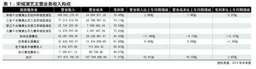 在一個公園+一臺演出的基礎上,宋城景區(qū)通過景區(qū)門票、演藝票及物業(yè)租賃取得收益。在門票方面,通過與旅行社合作吸引來杭州的游客觀賞,通過收取游客的門票費用賺取利潤。因此,票價的提升在某種程度上拉升了其營業(yè)收入。2014半年報也顯示,在報告期內,宋城演藝共接待游客和觀眾543萬人次,實現(xiàn)營業(yè)收入3.91億元,同比上漲48.41%;營業(yè)利潤實現(xiàn)2.15億元,比去年同期增長42.59%。宋城演藝的一位內部人士也向記者透露,全國旅游市場下半年整體發(fā)展態(tài)勢肯定會比上半年好,另一個可以肯定的是宋城演藝今年同期肯定會比去年同期好。