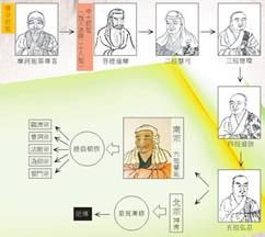 達(dá)摩初祖、神光二祖、三祖僧璨,四祖道信,五祖弘忍、六祖惠能。